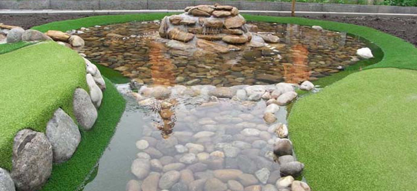 Die neue Anlage in Oberursel nördlich von Frankfurt hat als Thema die Natur und fügt sich sehr harmonisch in die Umgebung ein. Besonders attraktiv sind der Teich mit seinem Springbrunnen und eine malerische Holzbrücke, die über das Wasser führt.