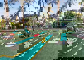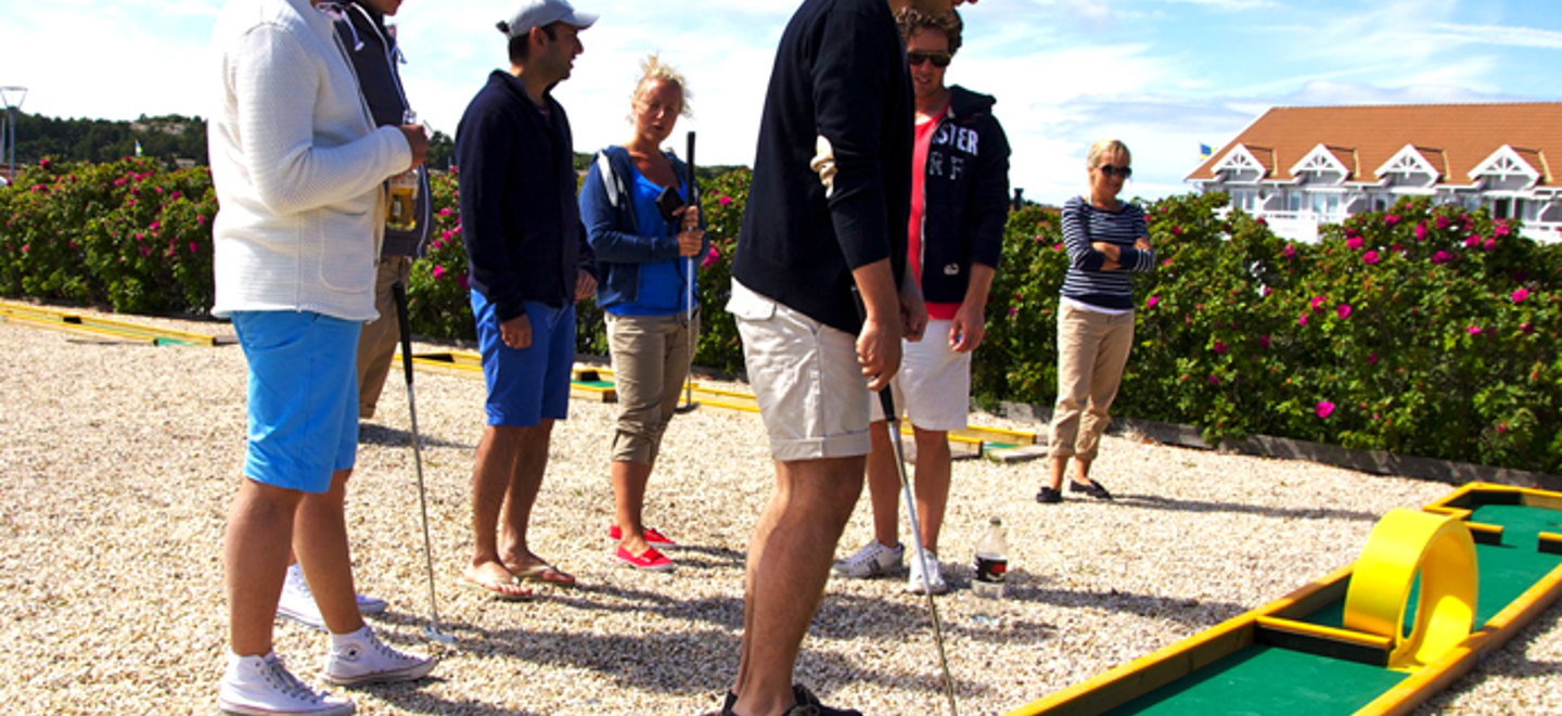 Die 9-Loch-Bahn, die aus City Basic-Bahnen mit diversen Crazy-Hindernissen besteht, hat eine idyllische Lage direkt am Meer. Beim Warten, bis man an der Reihe ist, kann man sich die Boote am Kai ansehen und nach dem Match lockt vielleicht ein kühles Bad im nördlichen Abschnitt des Sotekanals. Anlässlich der Einweihung am Mittsommertag wurde ein 24-stündiger Wettkampf mit verschiedenen Klassen ausgetragen. Die Teilnehmer durften beliebig viele Runden spielen, um ein bestmögliches Ergebnis zu erzielen, und konnten ihre Scorekarten zu jeder beliebigen Tages- und Nachtzeit abgeben. Über 200 Runden wurden eingereicht, doch wie allgemein bekannt, kann nur einer zum Sieger gekürt werden. Das beste Ergebnis waren fünfzehn Schläge auf 9 Löcher – ein imponierendes Ergebnis, das die Klasse der 7- bis 12-Jährigen erzielte. Deshalb ein guter Rat an alle Eltern: Diesen Sommer sollten Sie hart trainieren, wenn Sie sich mit den Jugendlichen messen wollen!