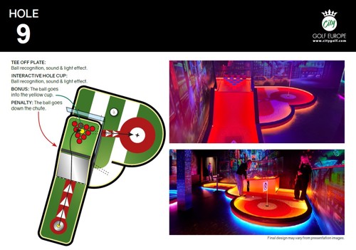 The set-up is a 12 hole system, and it will be the very first Putt EVO that is installed with a digitial scoring system!