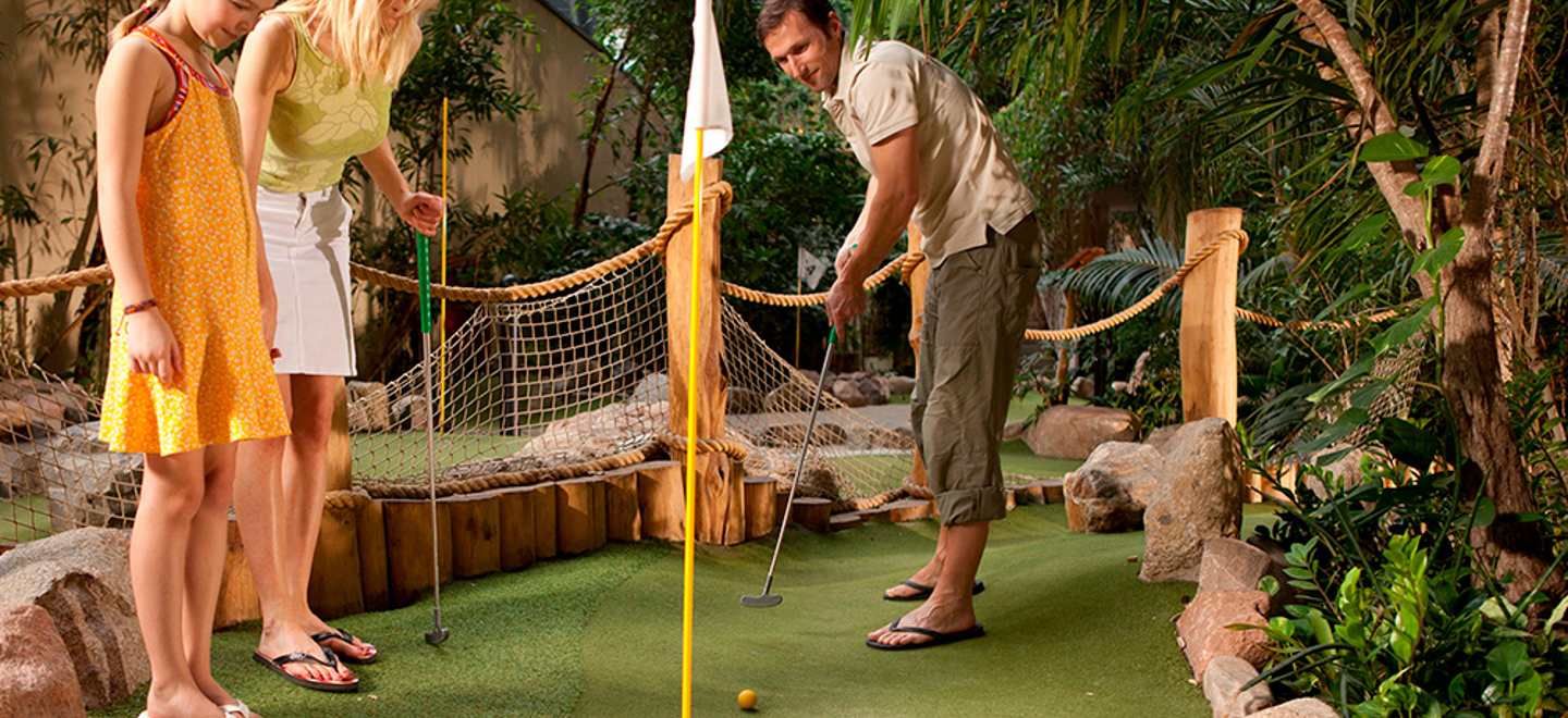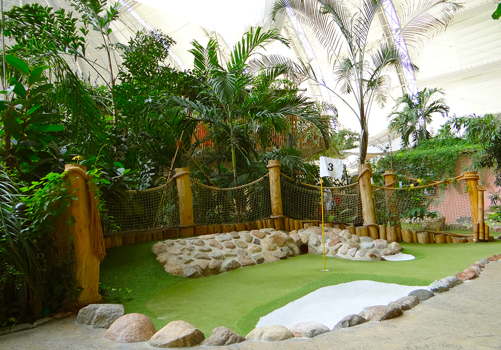 Der Tropical Dome in Berlin ist mit seinen 66.000 Quadratmetern eines der größten Gebäude Europas. In diesem tropischen Paradies voller exotischer Pflanzen, Palmen, Wasserfälle und natürlich einer Abenteuergolfanlage liegt die Temperatur konstant bei 25 Grad.
